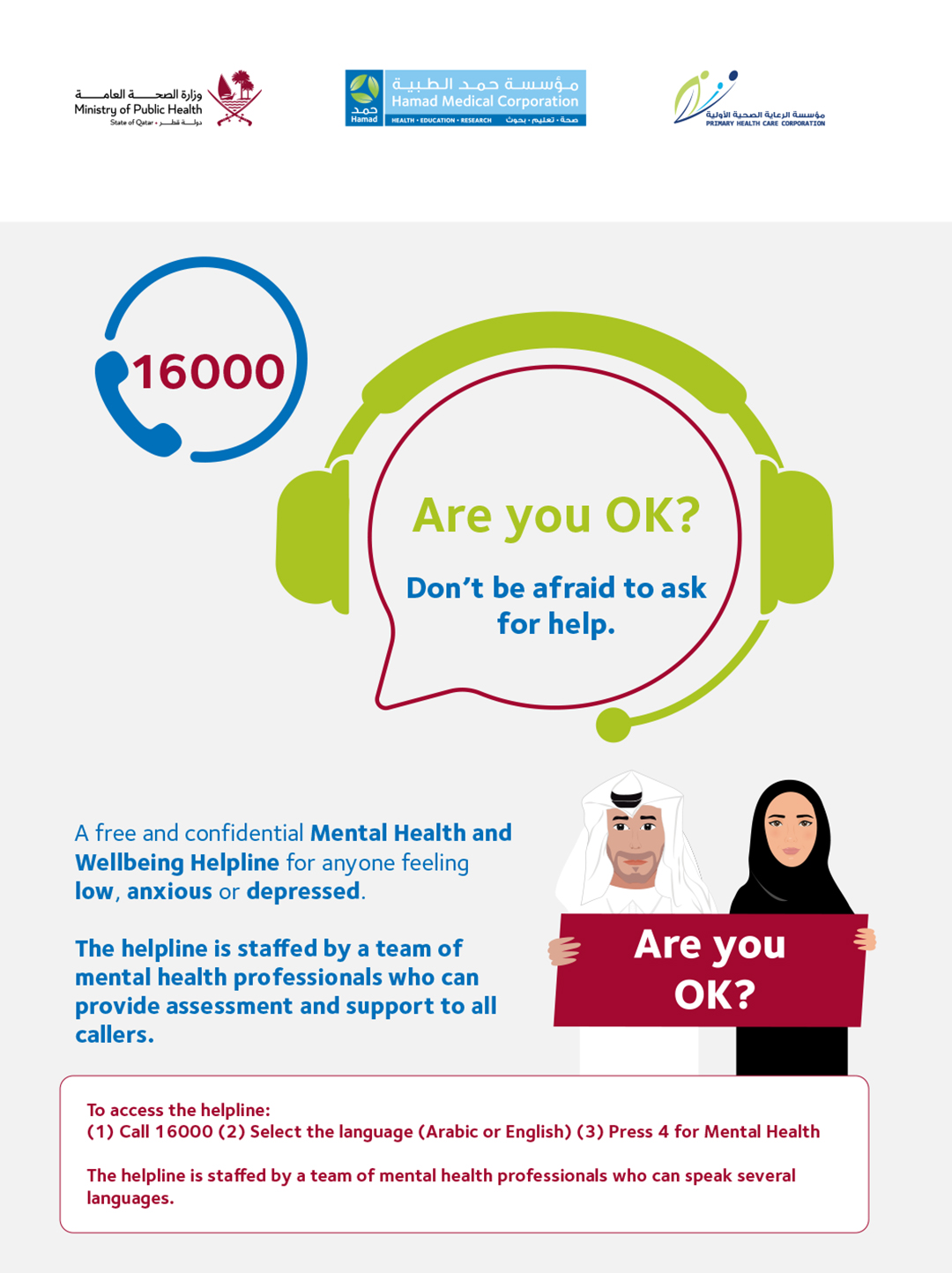 National Mental Health Helpline offers free and confidential support: 16000, then select option 4
